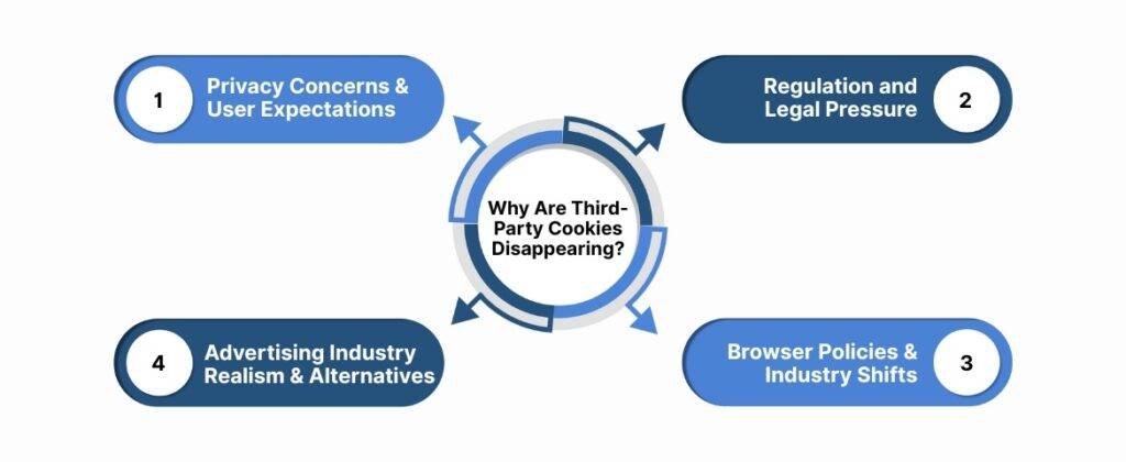 Third-party cookies are being phased out because online privacy expectations and data protection laws have evolved significantly. Advertisers can no longer rely on opaque tracking methods as users demand more transparency and consent. Here are the key factors driving this change and why it matters for your campaigns: